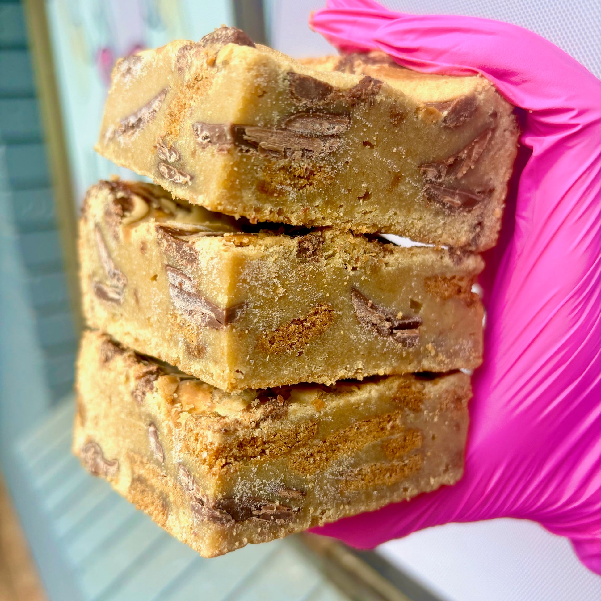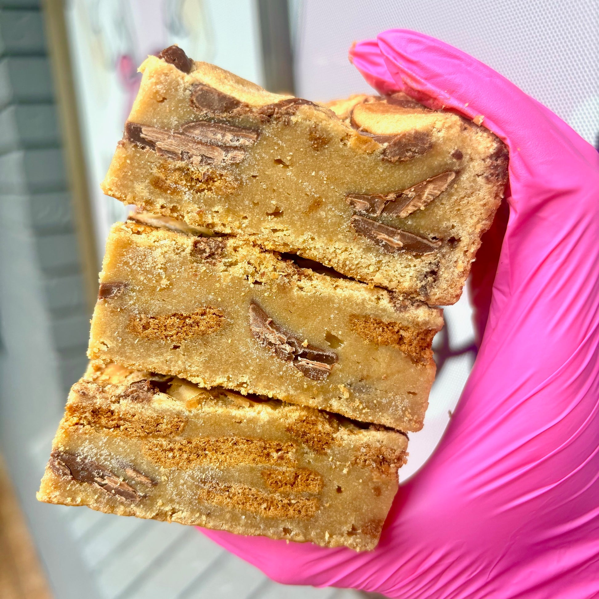 Rich, fudgy blondie loaded with crunchy Biscoff biscuits and milk chocolate chunks, finished with swirls of creamy Biscoff spread- pure bliss in every bite!