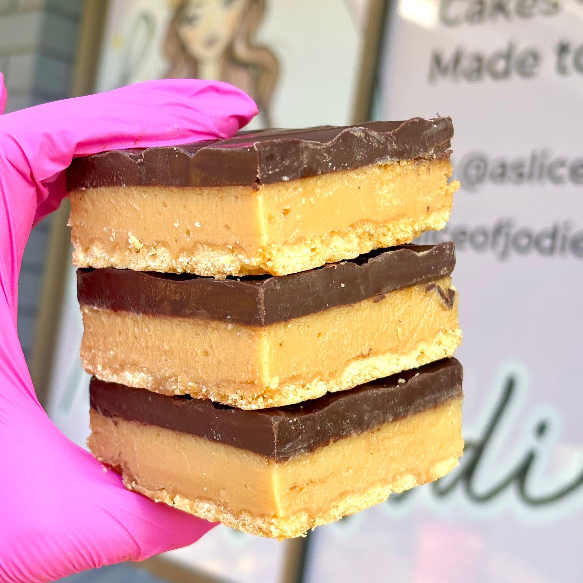 Smooth rich caramel on a shortbread biscuit base, topped with dark chocolate. It’s a classic!