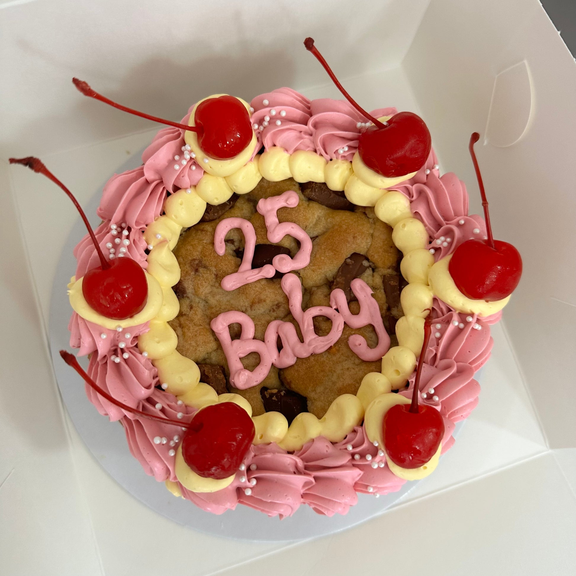 This is for those who aren’t cake lovers… Jodie’s cookie dough baked into a cake tin- with customisable decorations to suit your style!