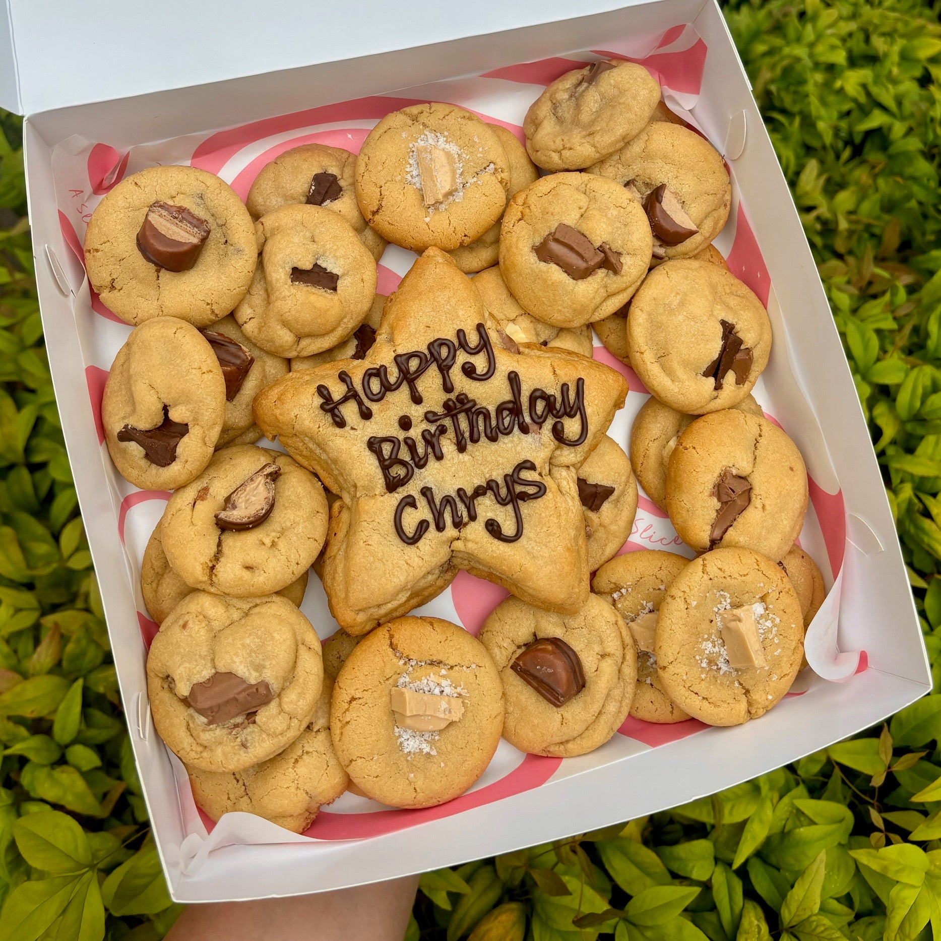 The perfect box to send to someone as a gift! Available with the option of a circle, heart or star shaped large cookie.