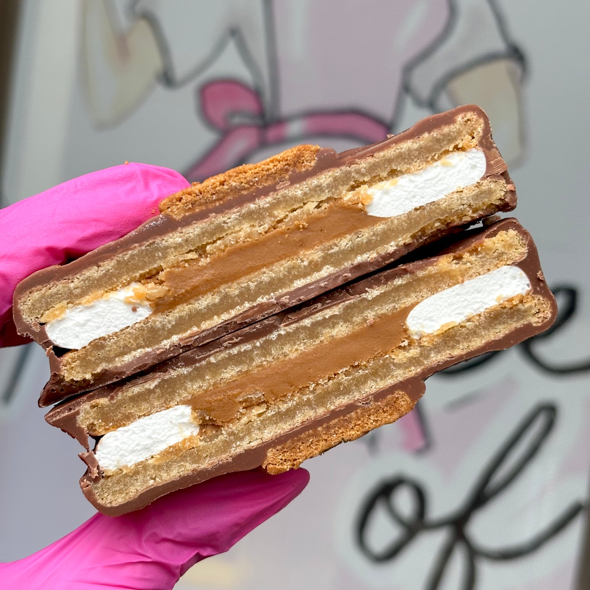 A decadent cookie and marshmallow inside, packed with biscoff goodness, and covered in a rich chocolate outside!